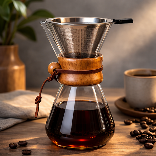 Barista Glass Pour-Over Coffee Brewer with Steel Mesh Filter